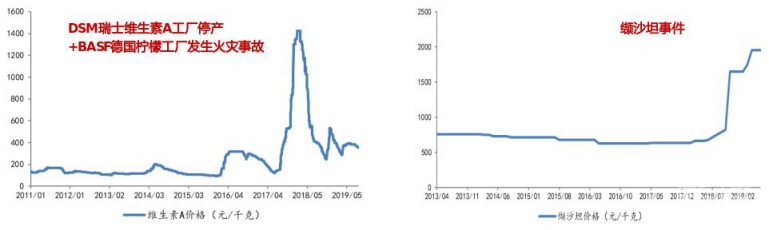 維生素類原料藥有著周期性的產品價格上漲:競爭格局有變化,產品價格急劇上漲的原料藥公司股價階段性爆發力很強。例如本次新冠疫情下,維生素原料藥和中間體價格上漲,出口量增大,得到巨大的收獲。