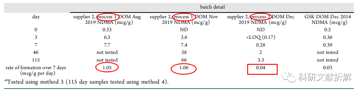 而且加入亞硝酸鈉或者亞硝酸可以發現生成主要的是降解產物,只有極少量的NDMA。