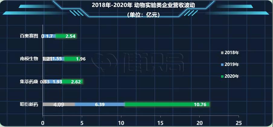 據(jù)公開(kāi)披露數(shù)據(jù),動(dòng)物實(shí)驗(yàn)類(lèi)企業(yè)在2019年、2020年實(shí)現(xiàn)了營(yíng)收的快速發(fā)展。財(cái)務(wù)數(shù)據(jù)明明白白地告訴投資者:2018年醫(yī)藥投資高峰時(shí)期投下的錢(qián)、資助的研究,開(kāi)始大批走入動(dòng)物實(shí)驗(yàn)階段。