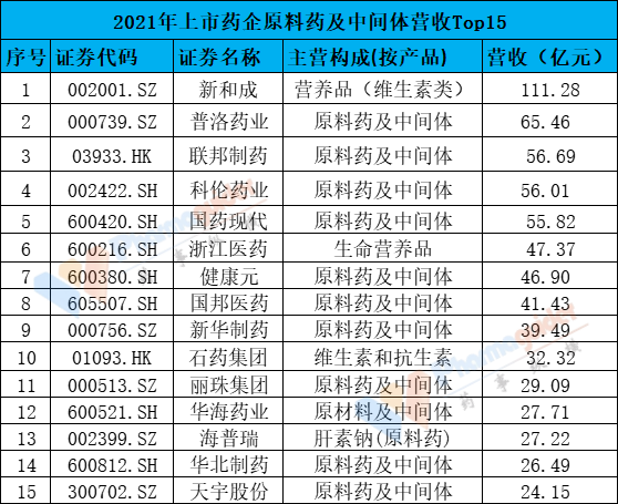10億元體量以上營收還有:東誠藥業(22.66億元),海翔藥業(14.8億元),富祥藥業(13.66億元),東北制藥(12.95億元),聯化科技(12.17億元),復星醫藥(11.35億元)等。